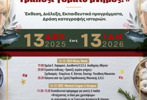 Χριστούγεννα για όλους στο Μουσείο Σιτηρών και Αλεύρων ανοιχτή για το κοινό η περιοδική Έκθεση «Τραπέζι γεμάτο μνήμες. Η μνήμη των αισθήσεων»