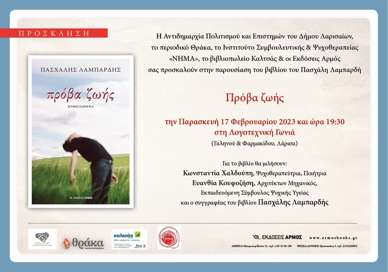 Η Αντιδημαρχία Πολιτισμού και Επιστημών του Δήμου Λαρισαίων, τo περιοδικό Θράκα, το Ινστιτούτο Συμβουλευτικής & Ψυχοθεραπείας «ΝΗΜΑ», το βιβλιοπωλείο Καλτσάς