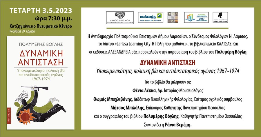 H Αντιδημαρχία Πολιτισμού και Επιστημών Δήμου Λαρισαίων, ο Σύνδεσμος Φιλολόγων Ν. Λάρισας, το δίκτυο «Λάρισα- Πόλη που Μαθαίνει- Larissa Learning