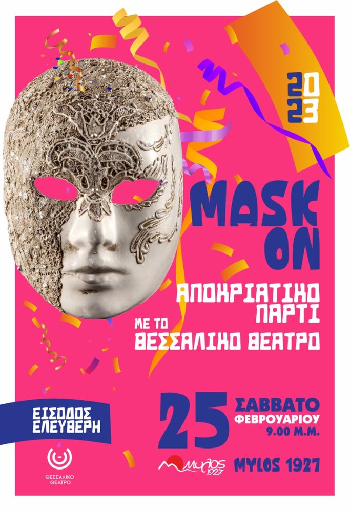 ΣΑΒΒΑΤΟ 25 ΦΕΒΡΟΥΑΡΙΟΥ ΜΕΤΑ ΤΙΣ 9 μ.μ. Το Θεσσαλικό Θέατρο σας προσκαλεί να είστε οι πρωταγωνιστές του αποκριάτικου πάρτυ που