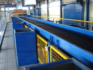 • Τα μη διερχόμενα από το κόσκινο υλικά θα μεταφέρονται στον κατ’εξοχήν τμήμα επεξεργασίας, που είναι η μεταφορική ταινία. Εκατέρωθεν της ταινίας διαλογείς θα διαχωρίζουν τα υλικά, ανάλογα με το είδος και την ποιότητα τους.