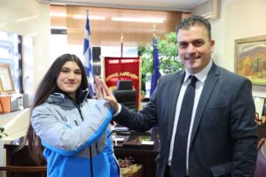Τη νεαρή Λαρισαία και πολλά υποσχόμενη πρωταθλήτρια αλπικού σκι, Θεοπίστη Γεωργιάδου, υποδέχθηκε ο Δήμαρχος Λαρισαίων, κ.Θανάσης Μαμάκος, νωρίς το πρωί