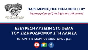 Θα πραγματοποιηθεί διαδικτυακά την ερχόμενη Τετάρτη 15 Μαρτίου, στις 7 μ.μ. Ο Δήμος Λαρισαίων πραγματοποιεί δημόσια διαβούλευση για το θέμα