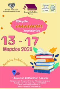 Η Αντιδημαρχία Πολιτισμού και Επιστημών Δήμου Λαρισαίων, η Δημοτική Βιβλιοθήκη Λάρισας και το Πολιτιστικό Κέντρο Εκπαιδευτικών Λάρισας (ΠΟΚΕΛ), διοργανώνουν για