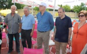 Στις εγκαταστάσεις της δημοτικής πισίνας, ο δήμαρχος Απ. Καλογιάννης μαζί με παιδιά που μετέχουν στην Κατασκήνωση στην Πόλη
